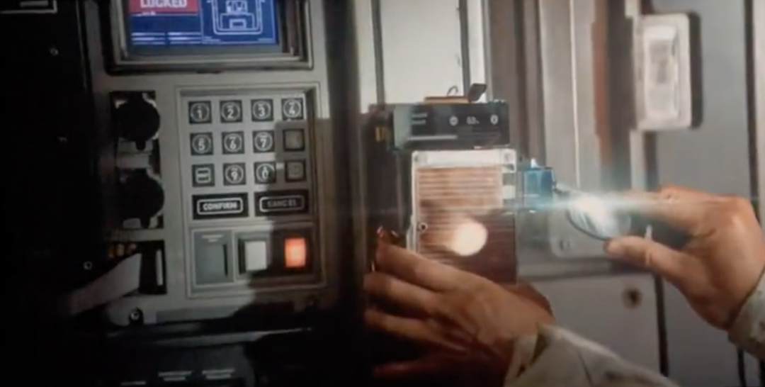 仔细观察,此时的刘培强将镜片当作放大镜使用,给太阳能电池面板加热。通过特斯拉线圈原理,产生电磁干扰,成功打开门禁。