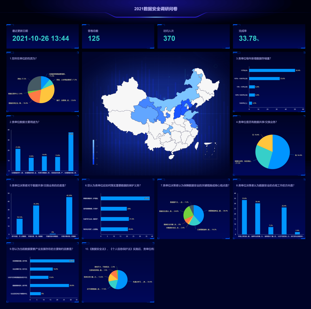 期间,中国网络安全产业联盟数据安全工作委员会联合安恒信息共同展开《数据安全调研》问卷,从甲方客户视角深入了解在《数据安全法》正式实施的背景下客户的痛点。受访客户来自于互联网、金融科技、广告联盟等数据应用企业,医疗、运营商、交通、教育等应用单位,以及网信、公安等监管部门。