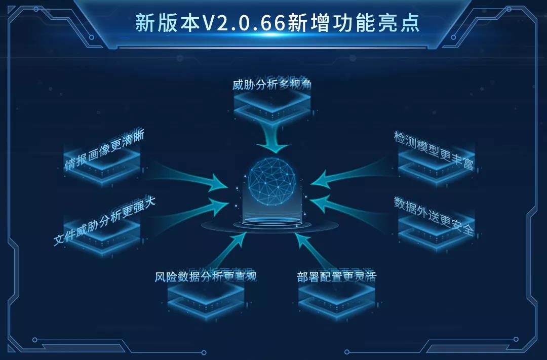 新版本完成了七大板块优化,显著提升了多视角威胁分析、情报画像、文件威胁检测、风险数据分析、检测模型、数据传输安全、分布式部署等能力,整体性能进一步提升,人工交互体验也有局部优化。