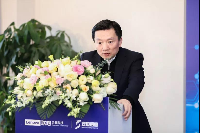 联想集团副总裁、联想企业科技集团业务销售总经理李国庆在致辞中表示,联想企业科技集团作为新基建的核心提供商,在联想集团“3S战略”的指引下,从智能物联网、智能基础架构、行业智能三大领域切入,从硬件设备提供商,逐步成长为提供“硬件—软件—服务”端到端的全栈式智能化解决方案和服务的平台。此次,联想与安恒信息强强联手,可谓是“因势而谋、顺势而为”,联想秉承着从“共营”到“共赢”的姿态,充分发挥自身的研发、生产、销售、服务优势,与安恒信息共同助力企业打好“安全牌”,全面护航企业顺利完成智能化转型,打造“技术价值+商业价值”双赢的行业标杆。