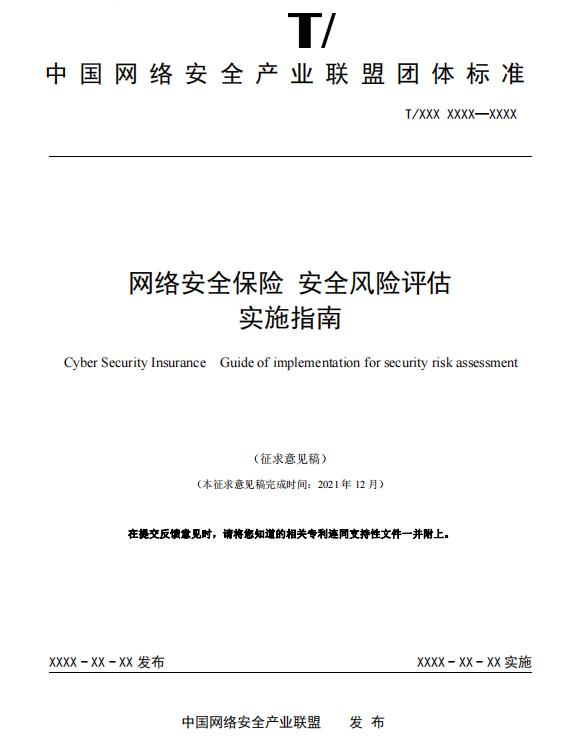 2021年12月24日,中国网络安全产业联盟发布通知,由人生就是搏z6尊龙信息技术股份有限公司牵头制定的《网络安全保险 安全风险评估实施指南》联盟标准已完成征求意见稿,进入为期一个月的征求意见阶段。