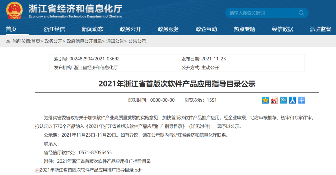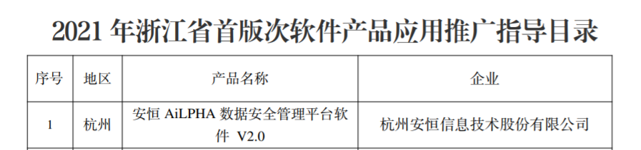 2021年浙江省首版次软件产品应用指导目录公示 安恒信息这款产品入选