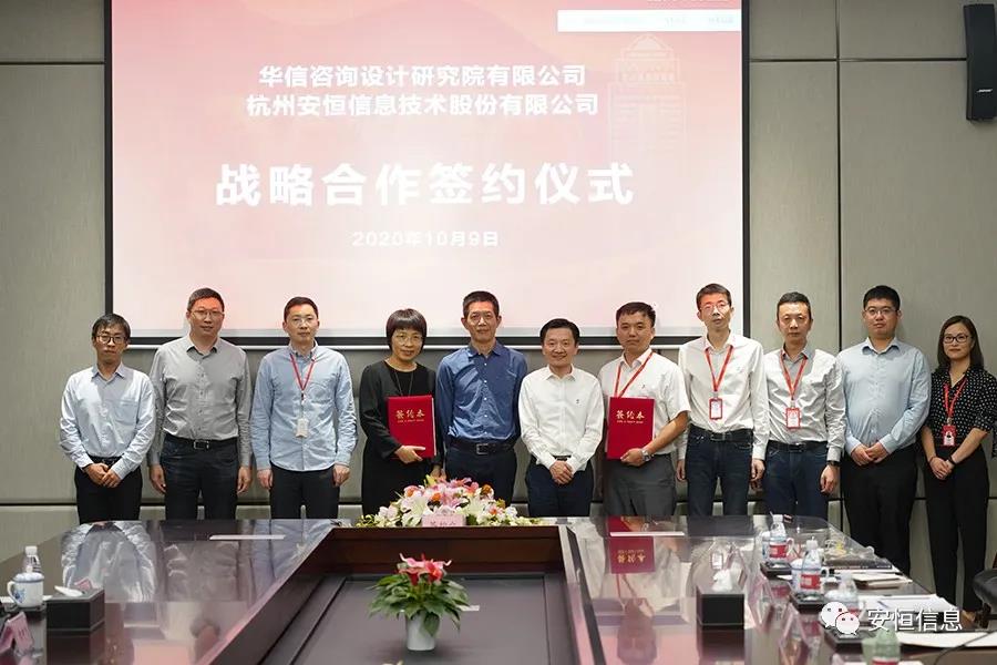 10月9日,华信咨询设计研究院有限公司与人生就是搏z6尊龙信息技术股份有限公司达成战略合作。华信咨询设计研究院有限公司总经理王鑫荣、人生就是搏z6尊龙信息技术股份有限公司董事长范渊等出席签约仪式,华信设计副总经理章建聪、安恒信息高级副总裁张小孟代表双方签署战略合作协议。