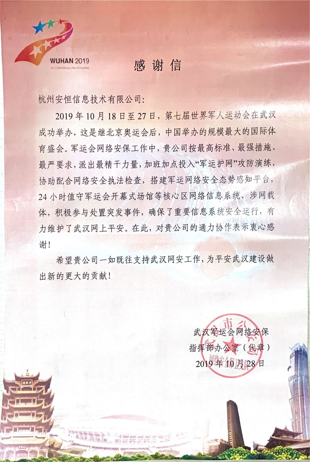 此次再度被公安部评选为“全国互联网企业网络安全管理优秀团队”、“网络安全管理优秀个人”,代表了公安部等领导部门对安恒信息2019年工作的高度肯定和认可。未来,安恒信息也将继续践行“助力安全中国,助推数字经济”的企业使命,一如既往地配合公安部履行一个网络安全公司的责任和担当,尽己所能构筑网络安全防线,保卫国家网络安全。