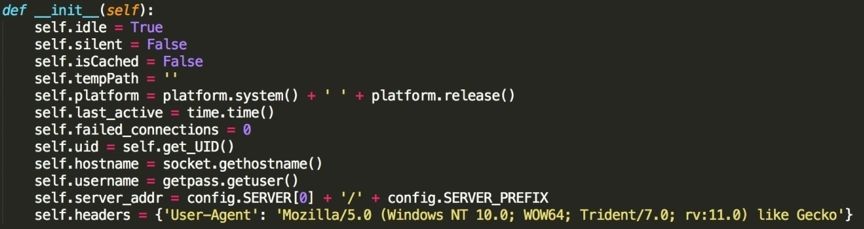 程序会先进行初始化,从配置文件中获取各类配置信息,以及收集本机计算机中 的各类信息,如获取系统版本信息: