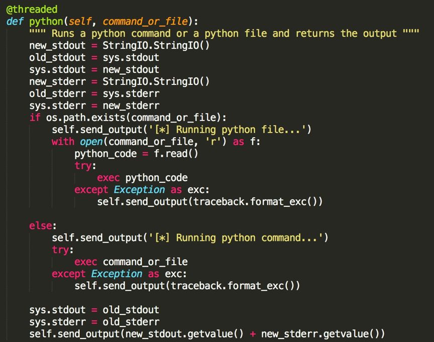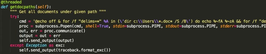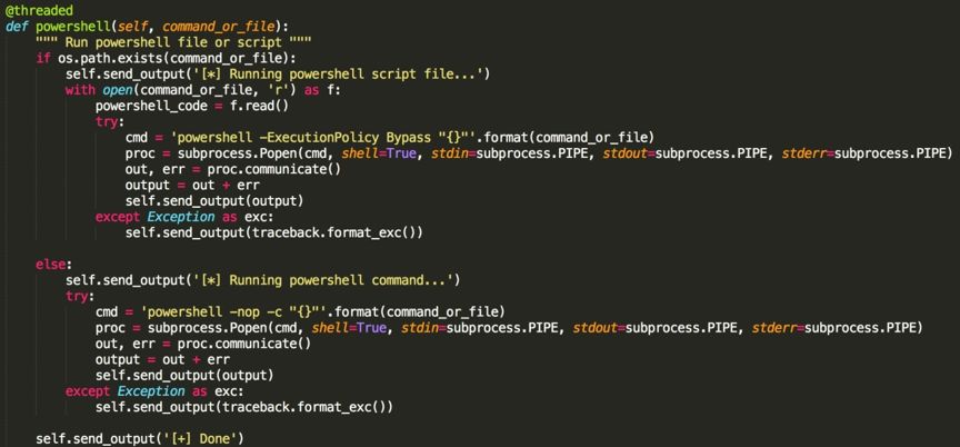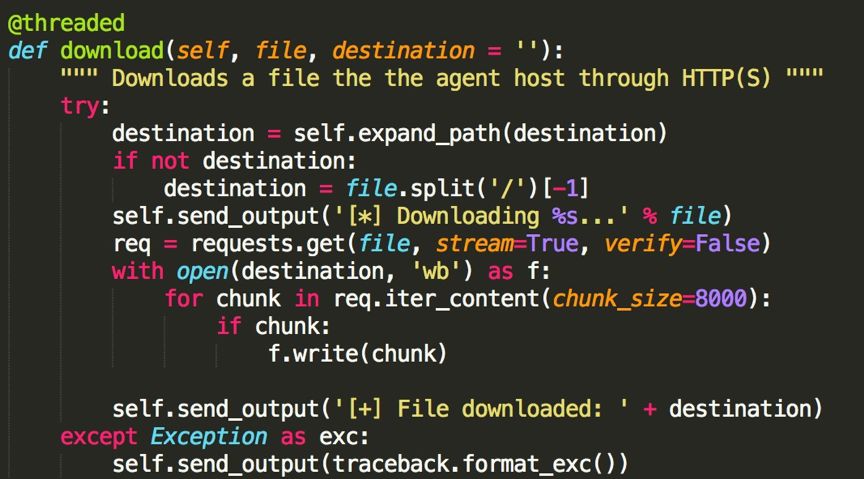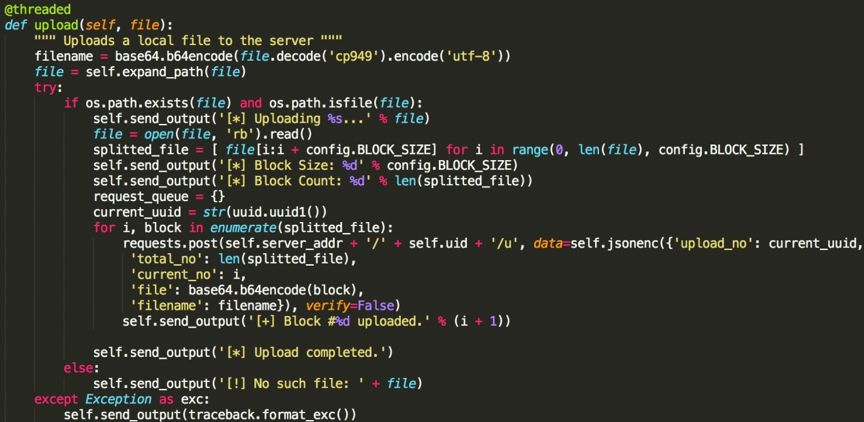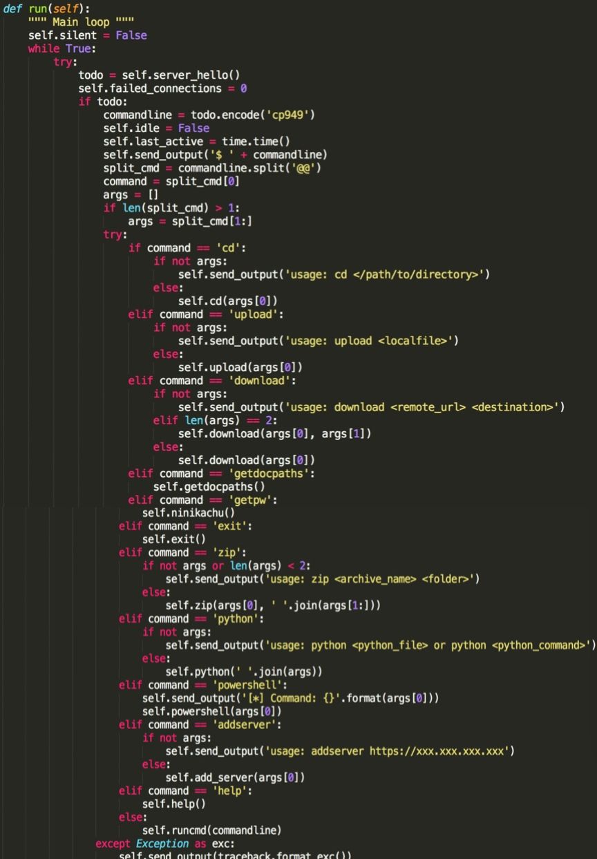 接下来分析反编译出的angent.py程序,发现其就是一个python远程控制程序。包含多个功能指令。