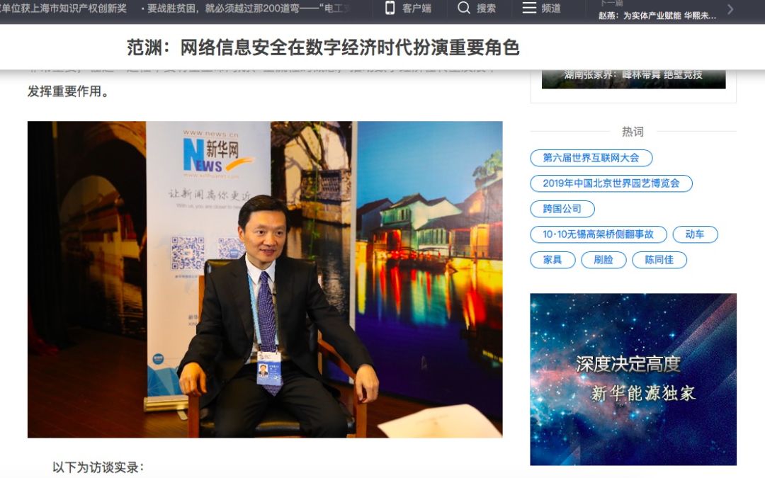 第六届世界互联网大会期间,央视《焦点访谈》、CCTV13、新华社、经济日报、经济参考报、新华网、人民网、光明网、中国日报网、浙江日报、钱江晚报、杭州日报等多家媒体纷纷报道安恒信息的科技创新成果,安恒信息受到广泛关注。小编摘录了部分,与大家分享。