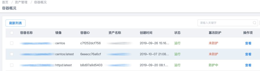 容器资产管理:全局展示容器、镜像、宿主机的对应关系,容器资产运行状态,篡改防护状态一览无余。