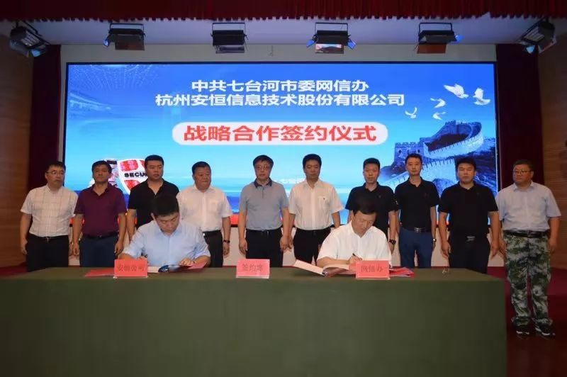 8月21日,在七台河市委常委、宣传部部长王义光,七台河市委网信办、公安局等十余家网信委主管领导的见证下,七台河市委网信办与安恒信息签订战略合作框架协议,双方就区域网络安全、技术应用、人才培养等方面将开展深度合作。
