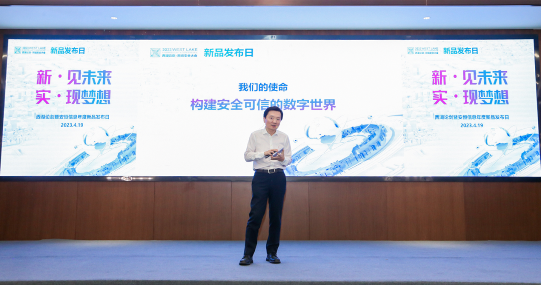 4月19日,西湖论剑暨安恒信息首次年度新品发布会举行。安恒信息董事长范渊作《新·见未来 实·现梦想》主题演讲,分享安恒信息战略新进展、产品新升级、生态新模式等,助力构建安全可信的数字世界。