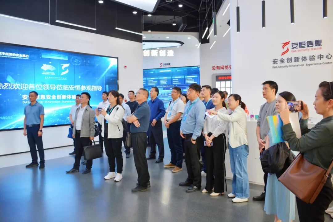 上午10:30,在高级副总裁、首席人力官冯旭杭,高级副总裁、首席人才官苗春雨,副总裁、安恒团委副书记吴澄的陪同下,长三角高校就业部门负责人等一行参观了安恒安全创新体验中心。