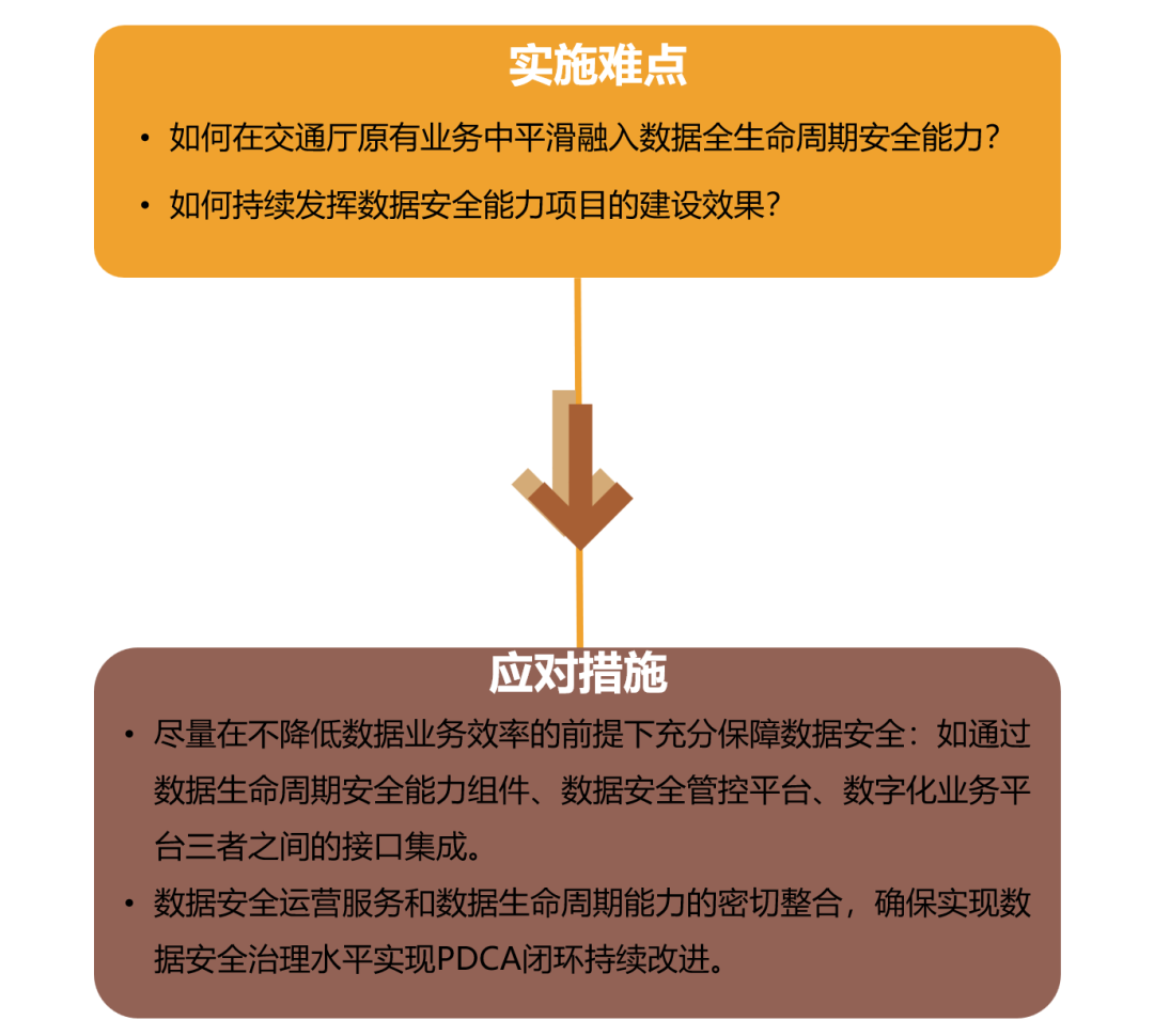 数据安全能力作为数字化业务平台业务运行的基础保障,需要保障数据安全防止数据泄露,同时也要考虑需求和业务,这也是该交通厅的数据安全能力建设面临的难点与挑战: