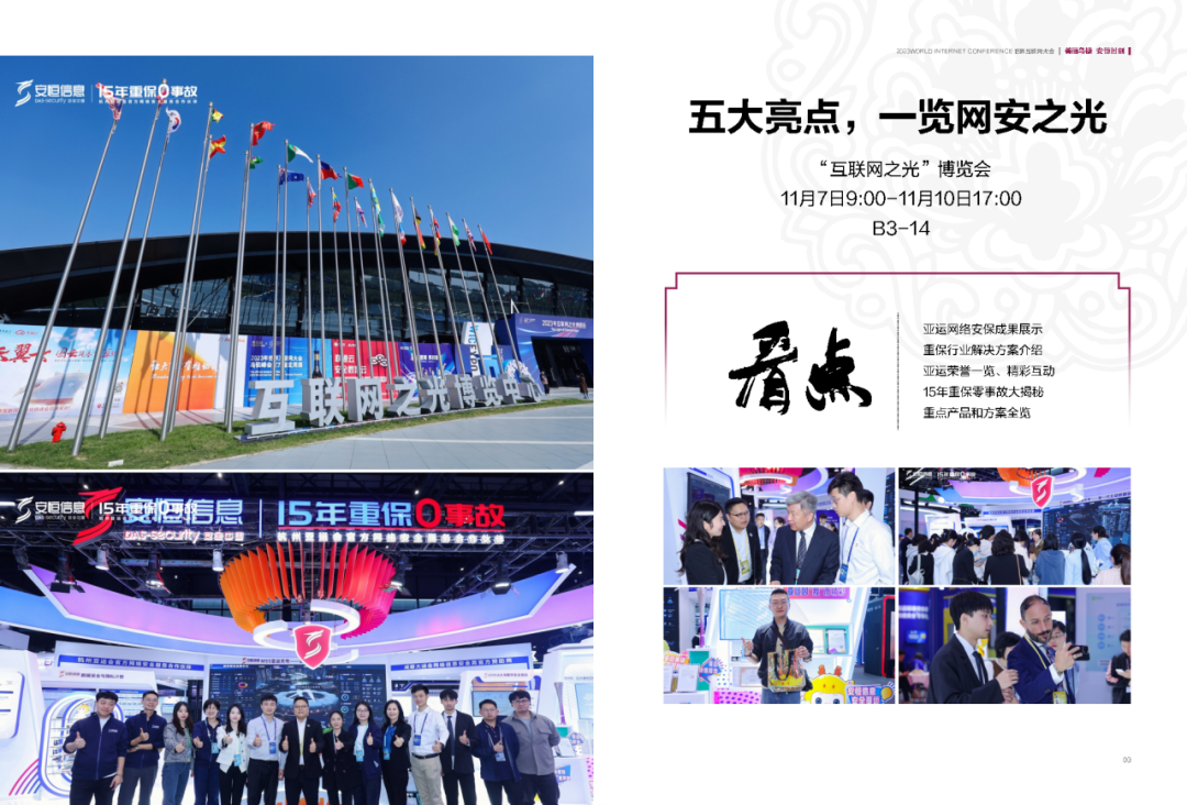安恒信息以十五年重保零事故为主线,依托杭州亚运会网络安保为载体,携五大看点亮相023年世界互联网大会“互联网之光”博览会。