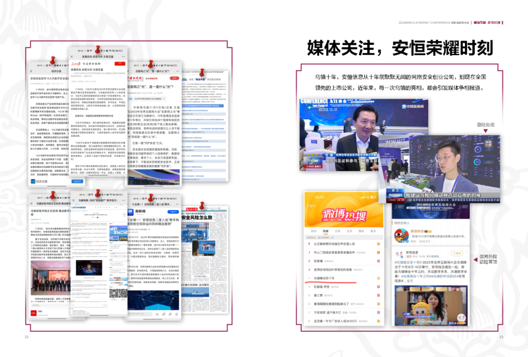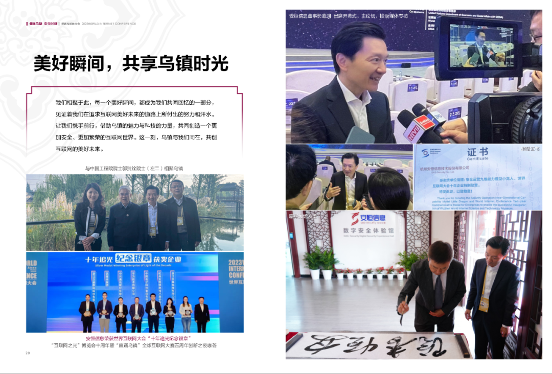 盛宴落幕、回忆不止,安恒信息集齐世界互联网大会精彩时刻,采编发布2023世界互联网大会回忆录——《美丽乌镇 安恒时刻》电子特刊,翻阅读览,难忘48时辰、回顾点滴瞬间。