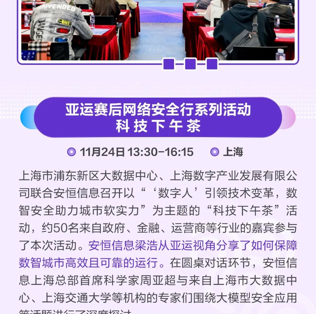 在数字化浪潮中,作为深耕数字安全行业多年的领军企业之一,安恒信息打造了完善的安全运营体系,并在各行各业拥有丰富的实践落地经验,可为广大用户提供安全屏障,助力数字化建设。