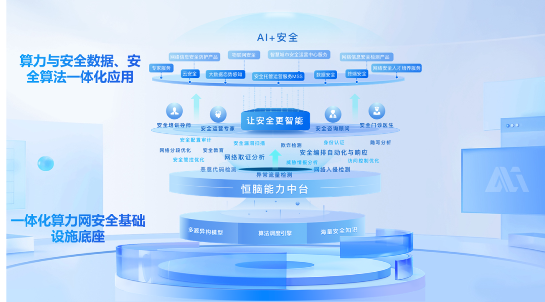 当算力基础设施具备了云网安一体化保障基础能力时,根据用户需求的不同,运维的复杂度也面临着效率低下的问题,所以,人生就是搏z6尊龙要提升算力网络的智能化安全运维的效能,利用安全大模型技术,实现云边端安全基础设施自动跟IT及云业务协同,让AI大模型可以高效的协同处理安全事件。