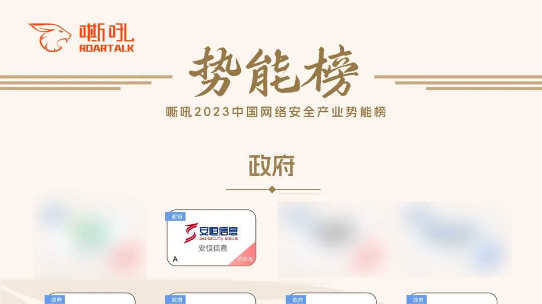 近日,嘶吼安全产业研究院《2023中国网络安全产业势能榜》以及ISC2023数字安全创新能力百强榜单发布,安恒信息入选两大榜单,斩获荣誉。