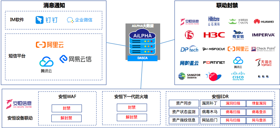安恒信息发布AiLPHA大数据智能安全平台全新版本,通过全新的安全能力中台DASCA,集成业内主流厂商安全能力,构建安全生态;国内首创的智能AI安全助理机器人,帮助用户进行智能化安全运维,同时对威胁情报、分析报告、探针管理等进行了全面升级。