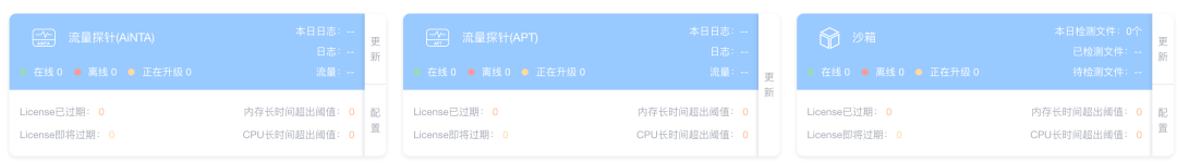 通过与各类探针深入结合,平台可监测探针状态,在线升级各类探针以及统一修改探针检测规则与配置,极大程度提升运维效率,减轻运维配置带来的工作压力,真正做到平台对接入探针的统一监控、统一升级和统一配置。