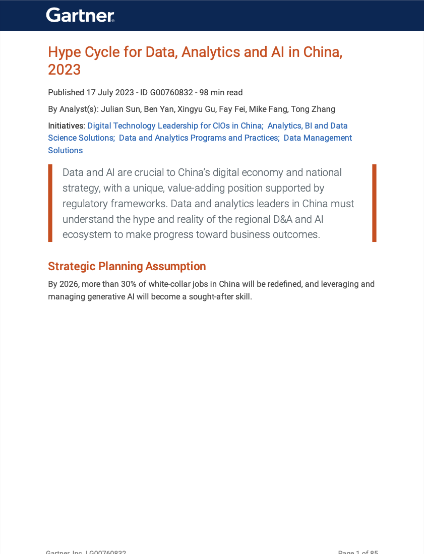 Hype Cycle for Data, Analytics and AI in China, 2023