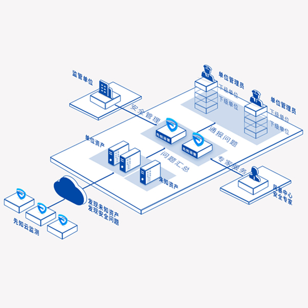通过先知云监测服务,可帮助用户梳理辖区内资产范围,包括资产基础信息和资产的归属和对应的管理架构,为后续的监管工作的流程化运行管理打下基础。