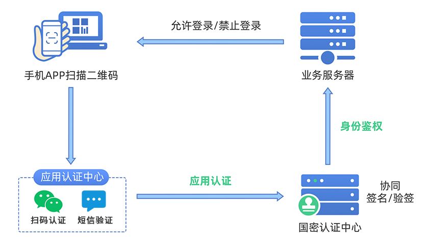 支持短信或扫码结合协同签名的身份认证、支持基于USBKEY的数字证书身份认证