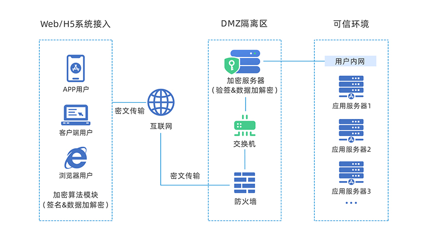 基于国产算法,实现业务数据从浏览器端至服务端的传输机密性与完整性保护。