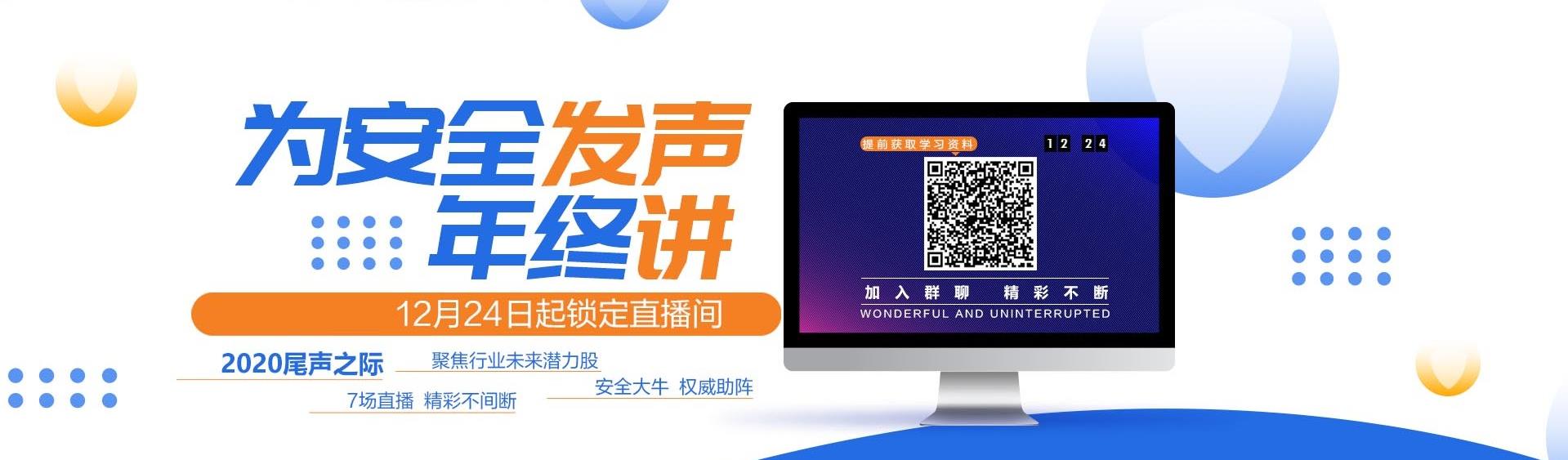 安恒信息通过在线直播的形式,聚焦行业未来潜力股、邀请安全大牛权威助阵,从云安全、大数据安全、工业控制系统、信创发展等多方向分享网络安全解决方案。年终讲|为安全发声,连续7场直播精彩不断。