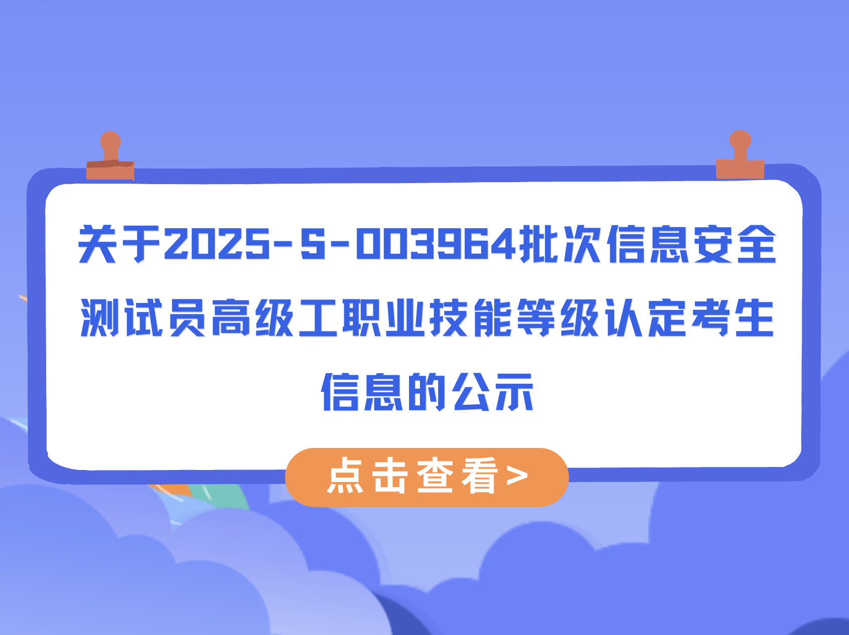 关于2025-S-003964批次信息安全测试员高级工职业技能等级认定考生信息的公示
